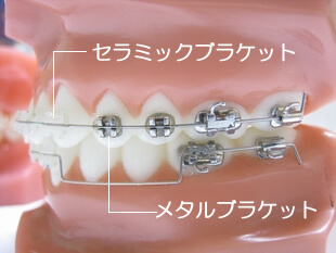 前歯には目立ちにくい審美的なセラミックブラケットを使用し、頬で見えない奥歯にはメタルブラケットを使用しています。伝統的な矯正装置であり、どのような症例においても使用することが可能です。